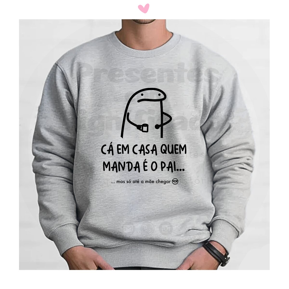 Sweatshirt ou Hoodie - Cá em casa quem manda é o pai... mas só até a mãe chegar!