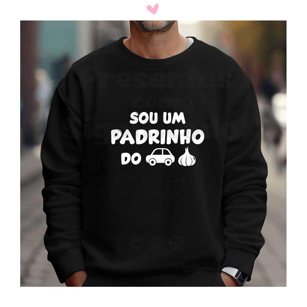 Sweatshirt (lisa SEM capuz) ou Hoodie (COM capuz e bolso frontal). Ambos em algodão e poliéster de 290g. Tecido cardado por dentro com punhos e cós reforçado. Personalizado com texto "Sou um padrinho do c*r*lho". Disponível em preto ou cinza mesclado.