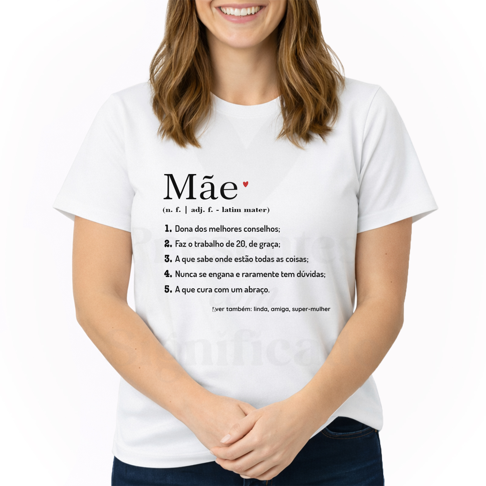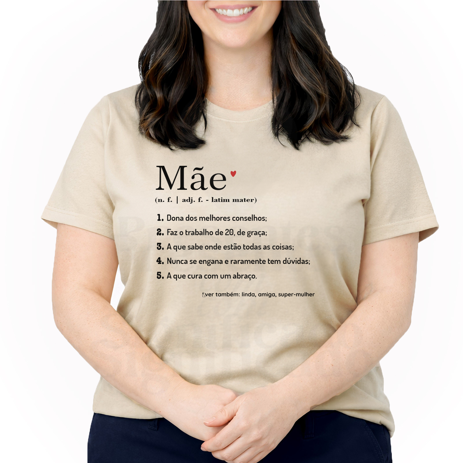 T-shirt 100% algodão de 190g personalizada com a definição de Mãe. Pode colocar as suas próprias definições ou alterar algum dos pontos.