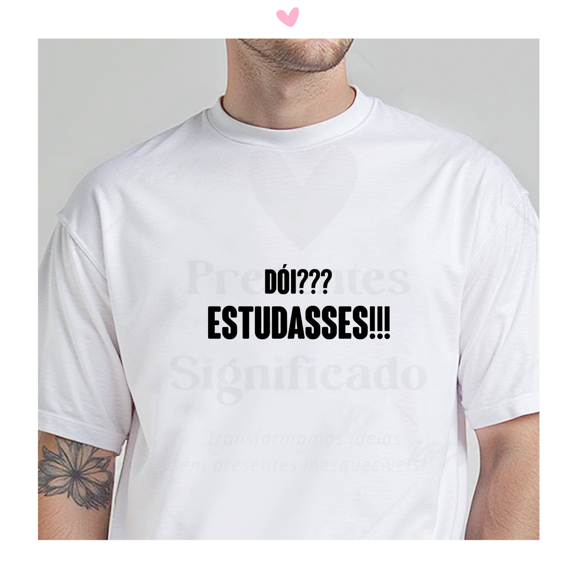 T-shirt 100% algodão de 190g personalizada com frase ""Dói??? Estudasses..."