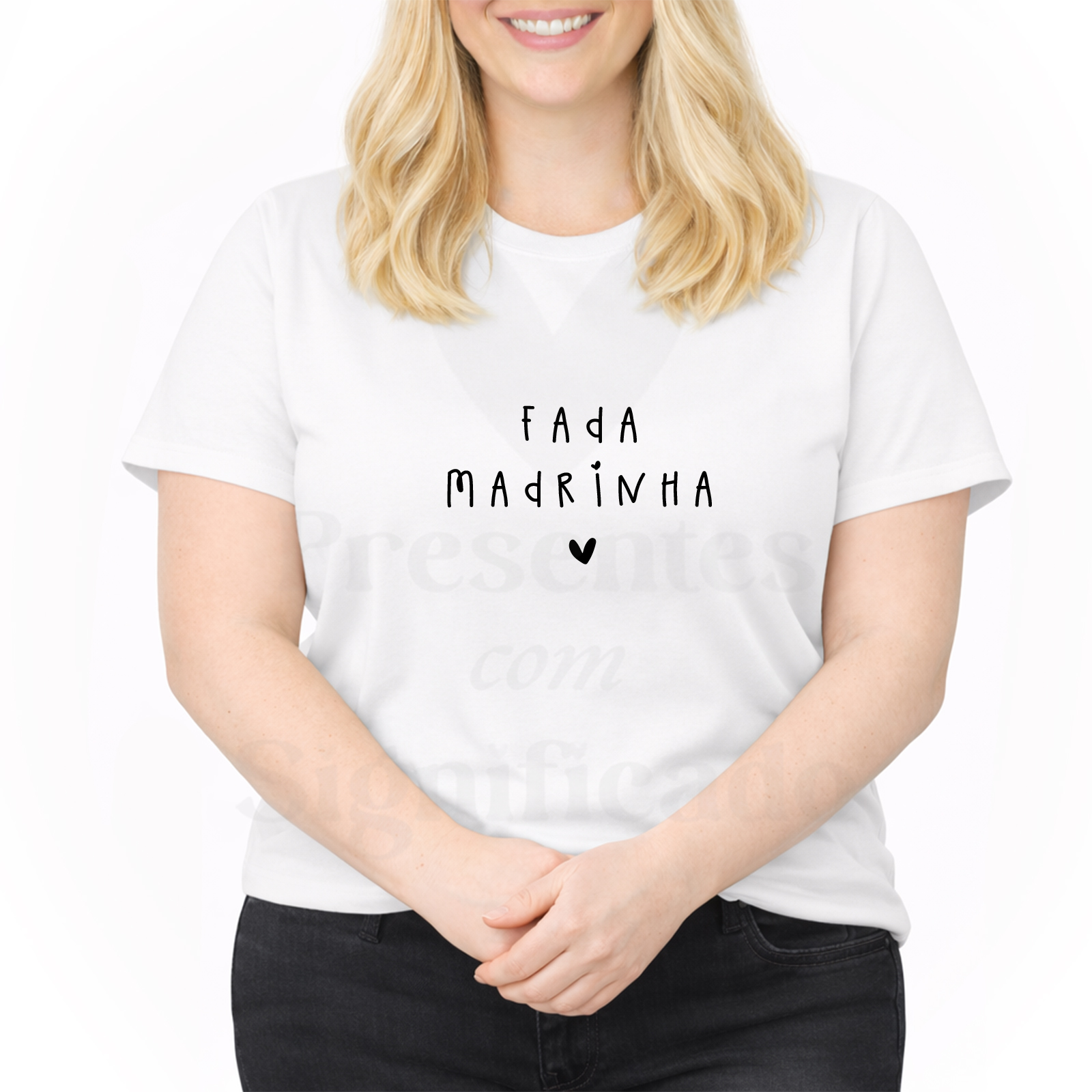 T-shirt 100% algodão de 190g personalizada com texto "Fada Madrinha".