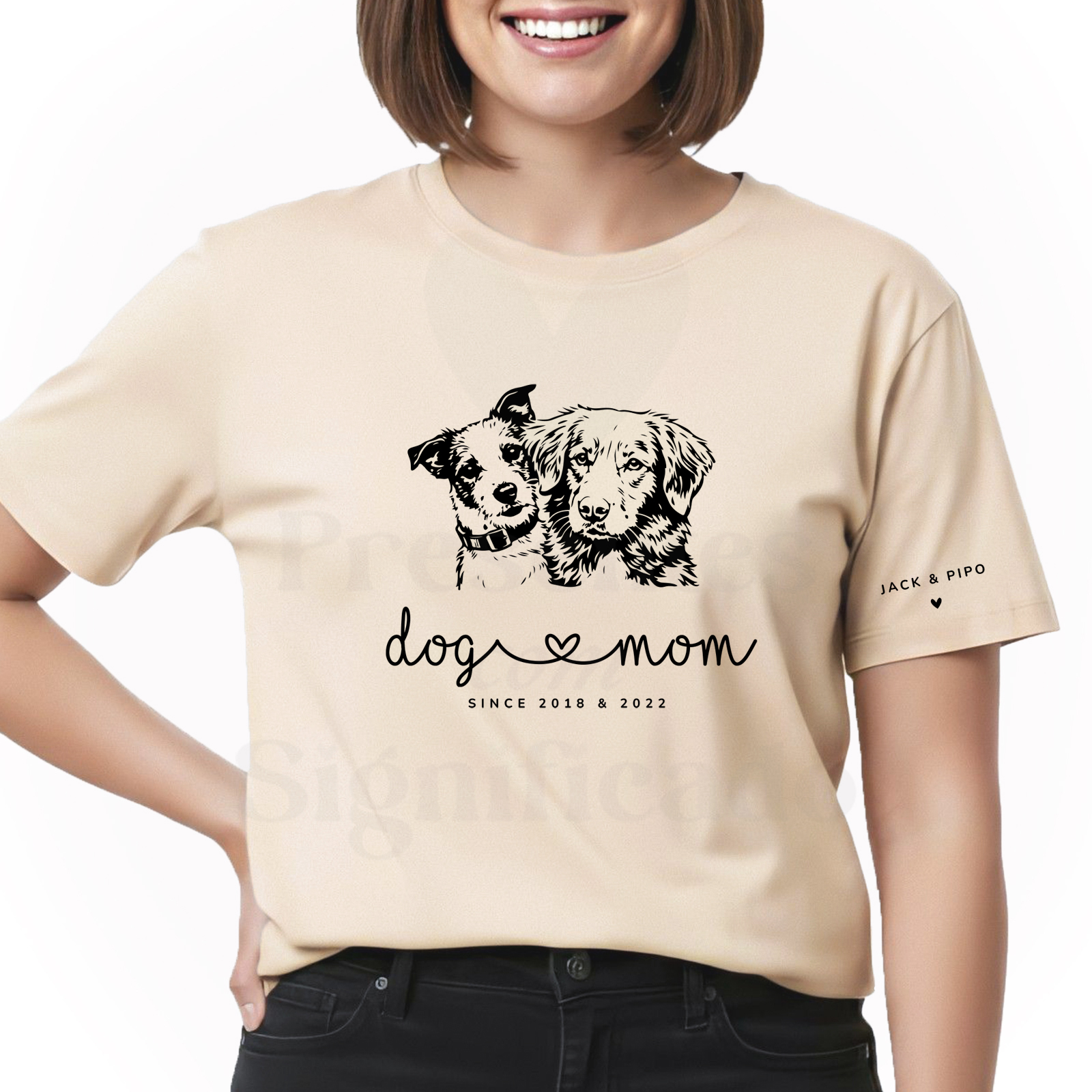 T-shirt 100% algodão de 190g personalizada com desenho/silhueta do seu animal. Pode anexar uma ou várias fotos do seu pet para conseguirmos fazer o trabalho com o maior detalhe possível. Possível adicionar nomes ou datas num detalhe pequeno na manga conforme exemplo.