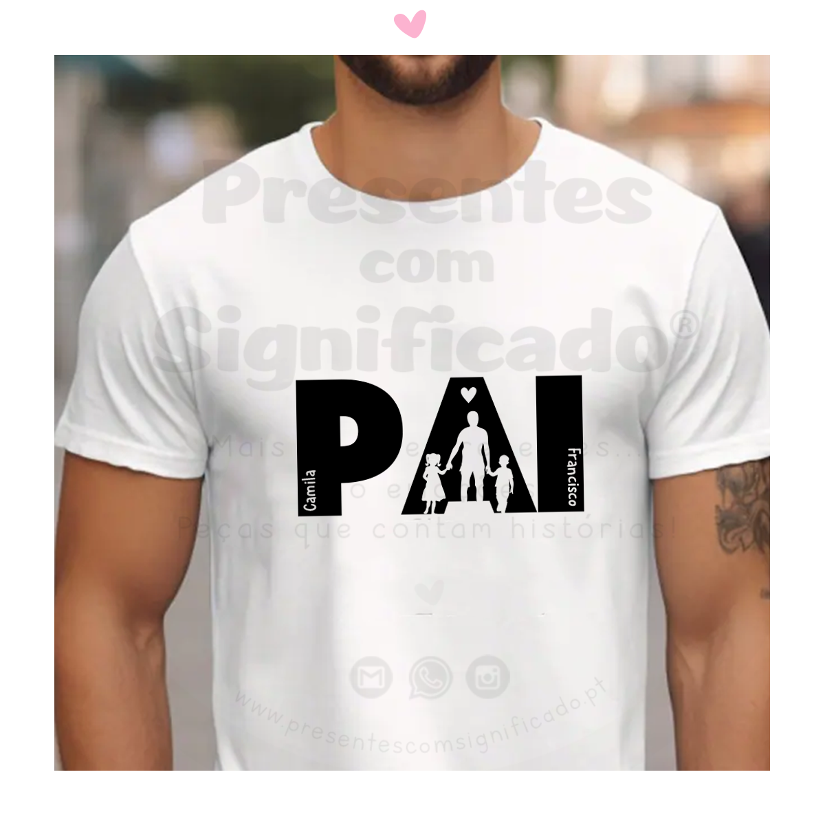 Home T-shirts adulto T-shirt - Pai com silhuetas T-shirt - Pai com silhuetas Cor da T-shirt - Tamanho Adulto (Unisexo) Escolha uma opção XS S M L XL XXL Silhuetas a colocar... Escolha uma opção Pai + menino Pai + menina Pai + 2 meninos Pai + 2 meninas Pai + casal Outra (indique no campo das observações no final da encomenda) Alterar/Adicionar detalhes na personalização 14,90 € Desconto de %. IVA incluído. Compre este produto e ganhe 44 Pontos! Saber mais Comprar Contactar Adicionar à wishlist T-shirt 100% algodão de 190g personalizada com palavra PAI e silhueta de pai c/filho(s) e nomes. Outros designs disponíveis mediante encomenda.Corte normal. Verifique tamanhos e medidas comparando com uma t-shirt existente - não se efectuam trocas. Tags T-shirtsTshirtsHomemVestuárioPersonalizadoEstampadoTecidoAlgodãoPretoBranco Partilhar