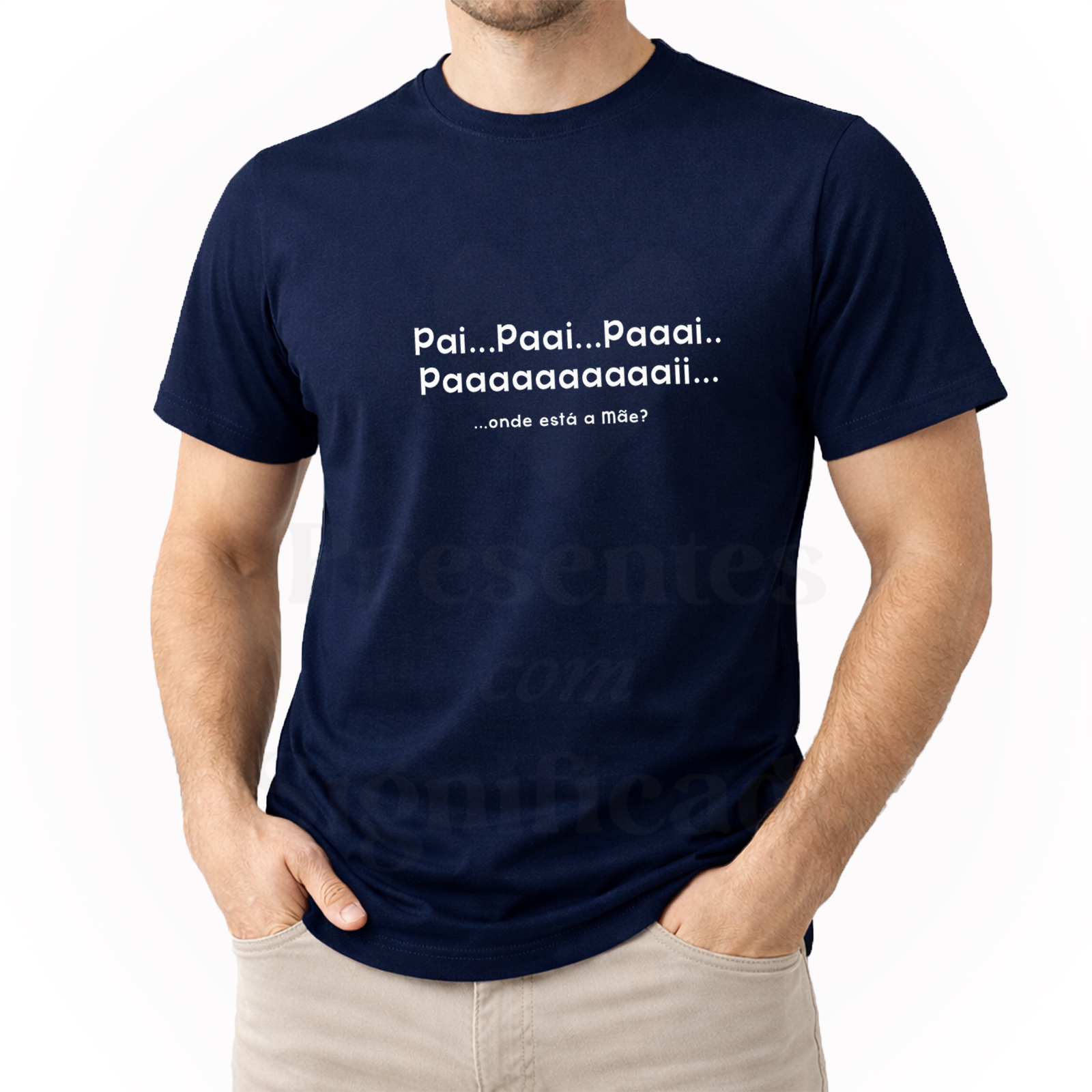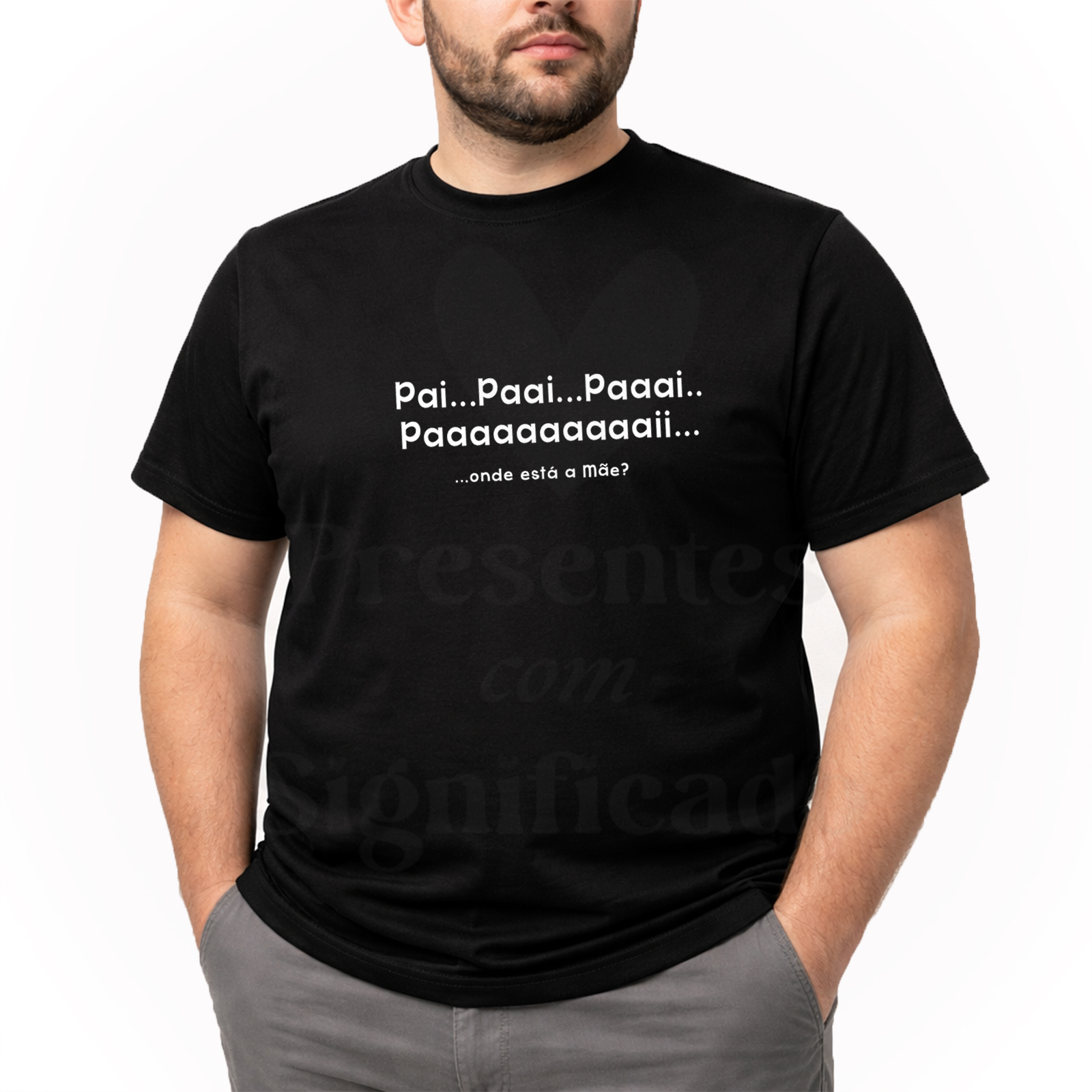 T-shirt 100% algodão de 190g personalizada com texto "Pai, Paaii, Paaaiii, Paaaaaii.. onde está a Mãe?"